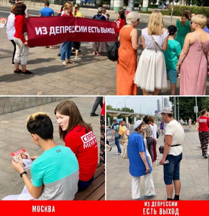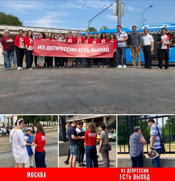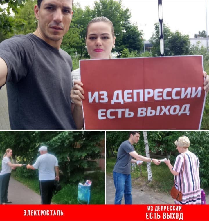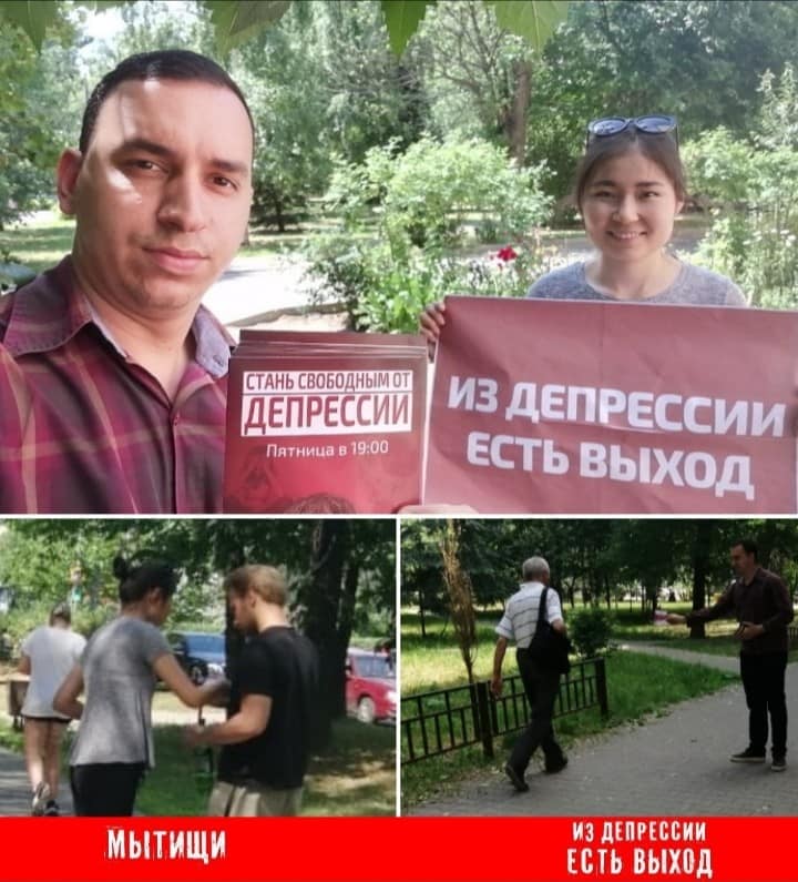 Волонтеры Центра Помощи, из которых многие были исцелены от депрессии, подходили к людям по улицам, чтобы раздать листовки о борьбе с депрессией, доказав, что есть выход из неё.